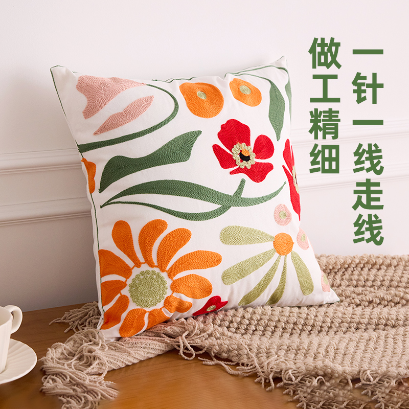 客厅沙发毛巾抱枕套ins新款帆布装饰靠垫护腰枕床头方形可拆洗
