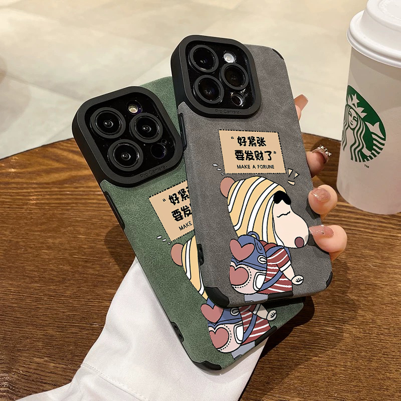 秋冬奶茶棕创意好紧张要发财手机壳适用iPhone15Promax苹果16防摔14pro全包12/13软11翻毛皮16plus小红书超火