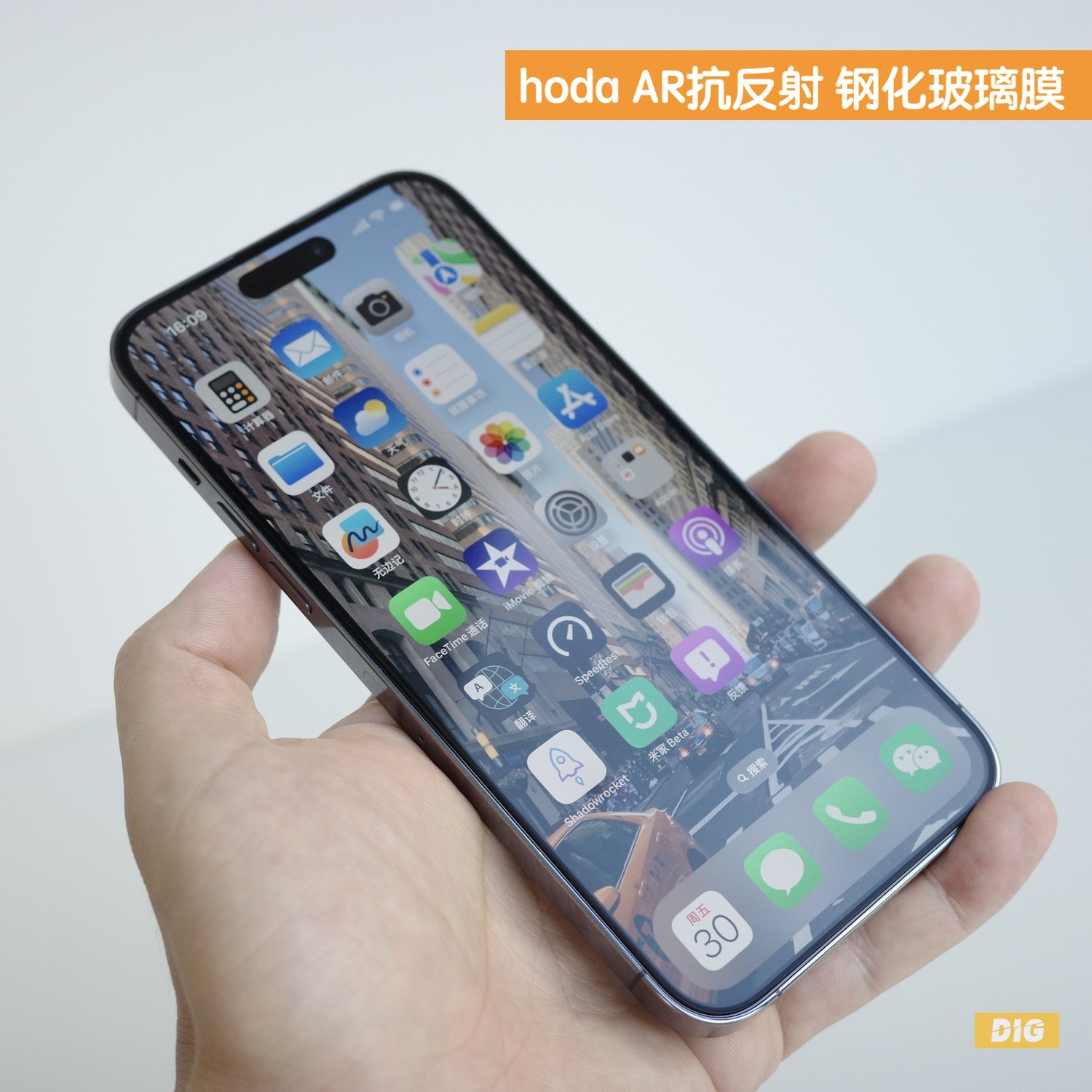hoda AR抗反射钢化玻璃膜 贴膜工具版 适用于iPhone15/14/13ProMax 0.33mm 疏水疏油电镀涂层 二次强化