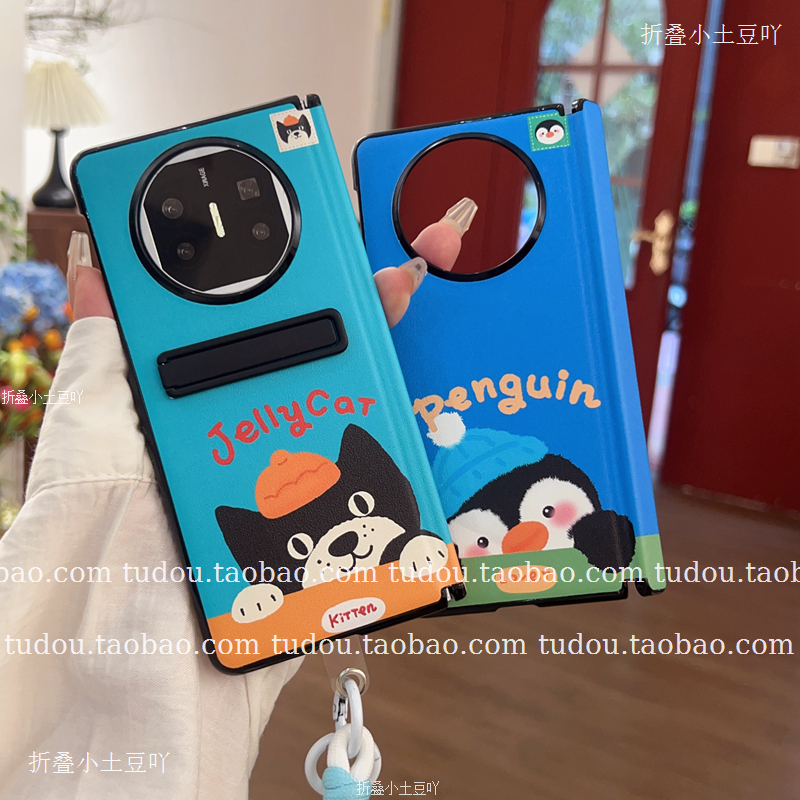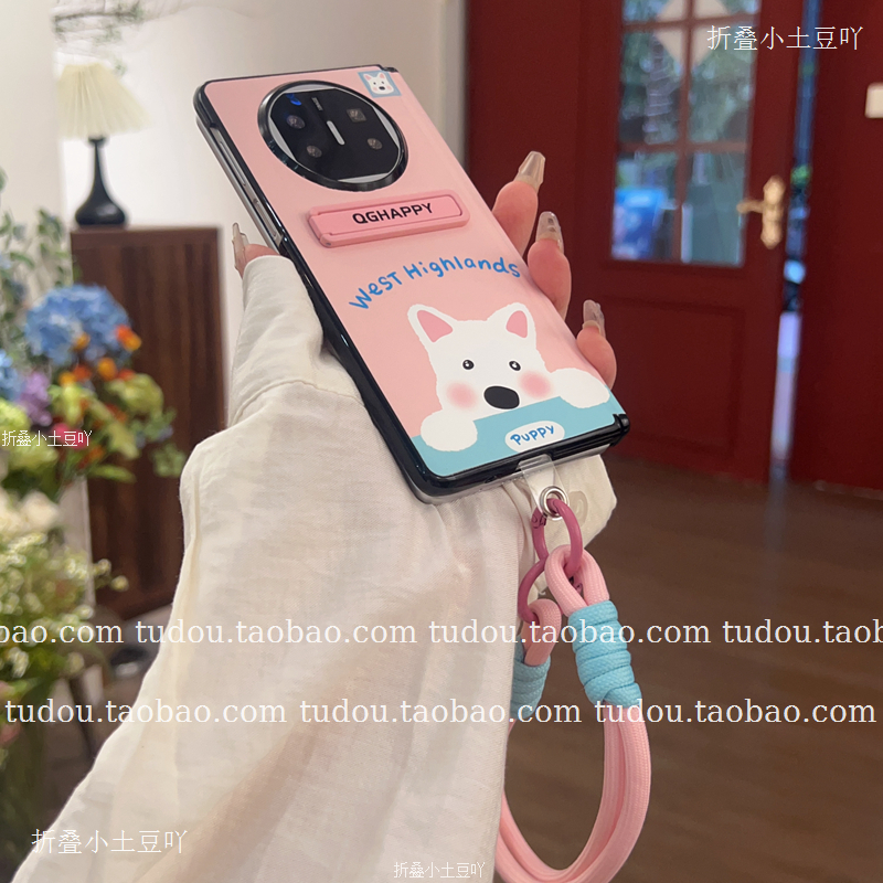 探头狗狗适用华为matex6手机壳中轴磁吸magicvs3皮质V2典藏版保护支架findn5手提zfold6挂绳xfold3男女情侣款