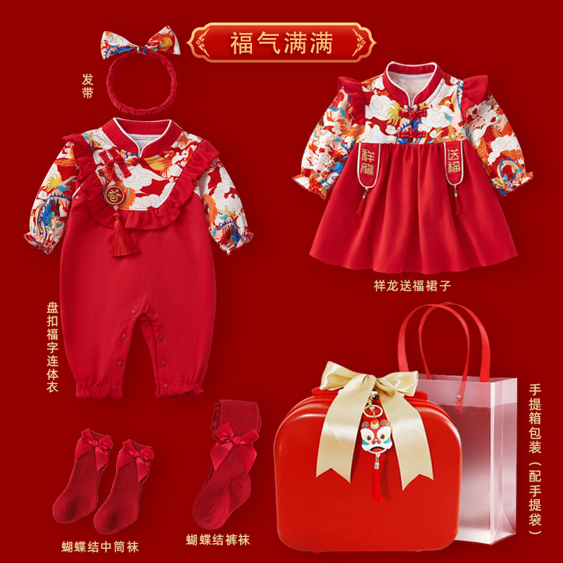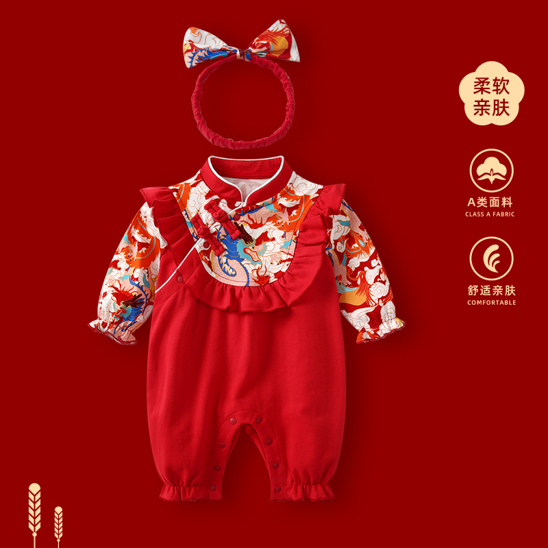 婴儿衣服秋冬新生女宝宝连体衣满月百天周岁礼服抓周秋装公主哈衣