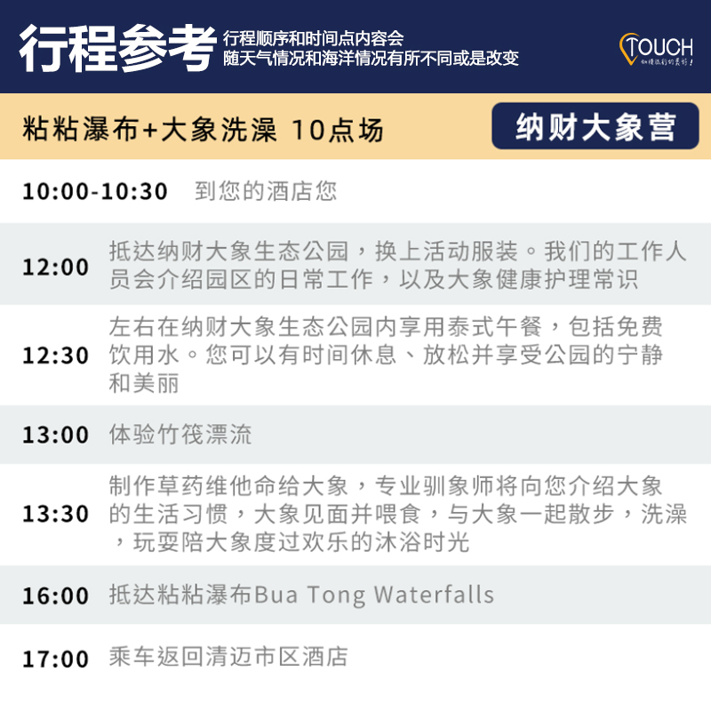 清迈曼谷粘粘瀑布大象营日游秘密纳财大象营骑象漂流丛林飞跃黏黏