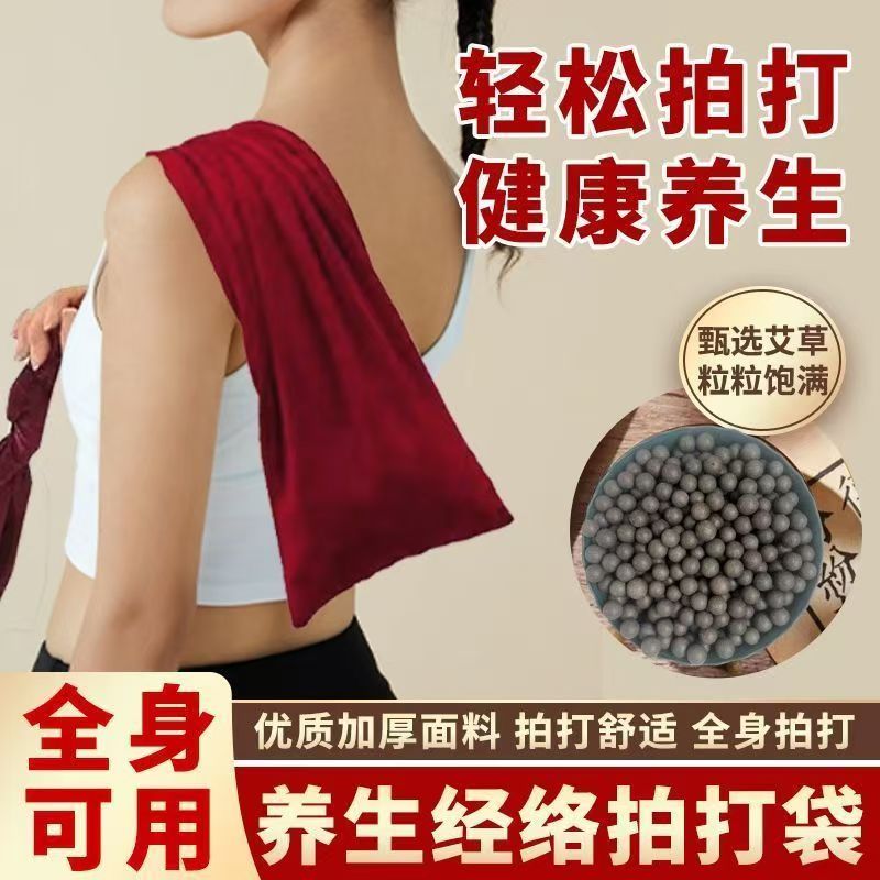 康祝慈拍打袋艾草拍背锤甩袋中老年养生腿按摩经络核桃疏通背部