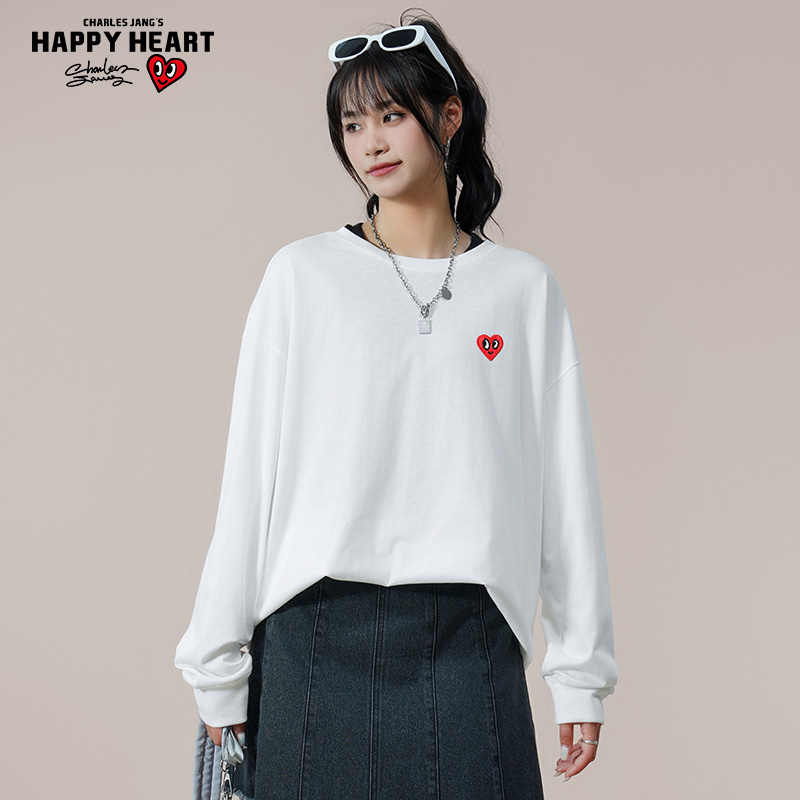 查尔斯桃心 春秋新款美式套头休闲长袖t恤男女同款内搭情侣打底衫