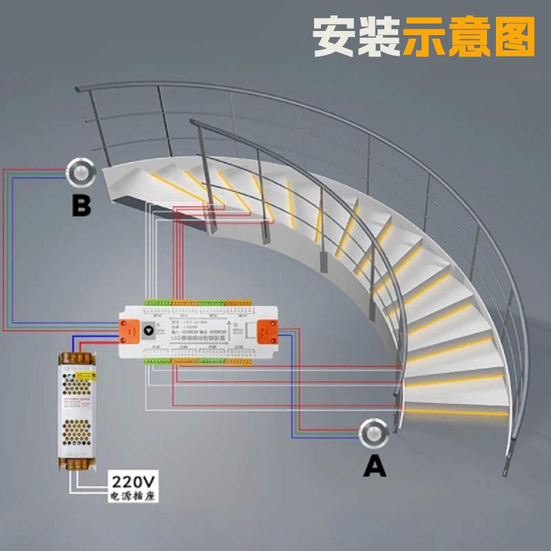 网红楼梯人体感应踏步灯32步逐步亮led台阶流水灯智能控制器1002