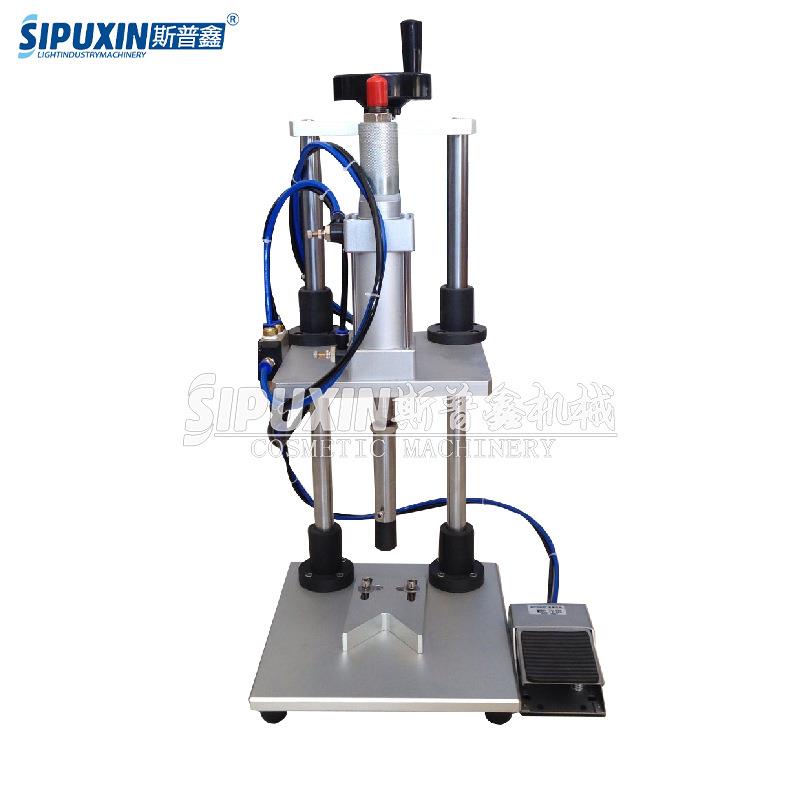 气动香水泵头盖中套机,气动香水瓶中套机,铝盖封口机,香水瓶中套