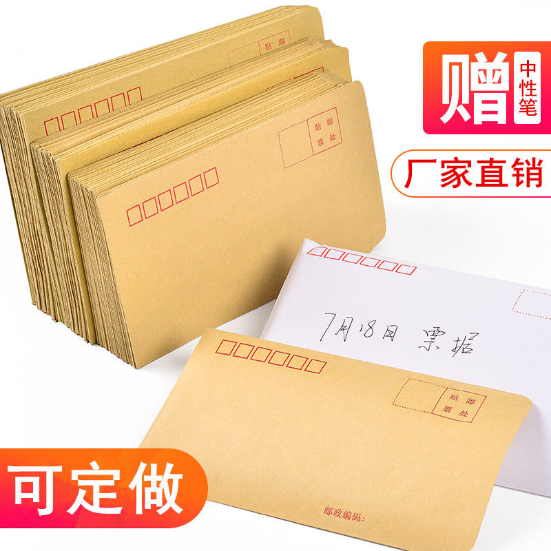 100个加厚信封袋黄色牛皮纸信封信纸标准增值税工资发票办公批发