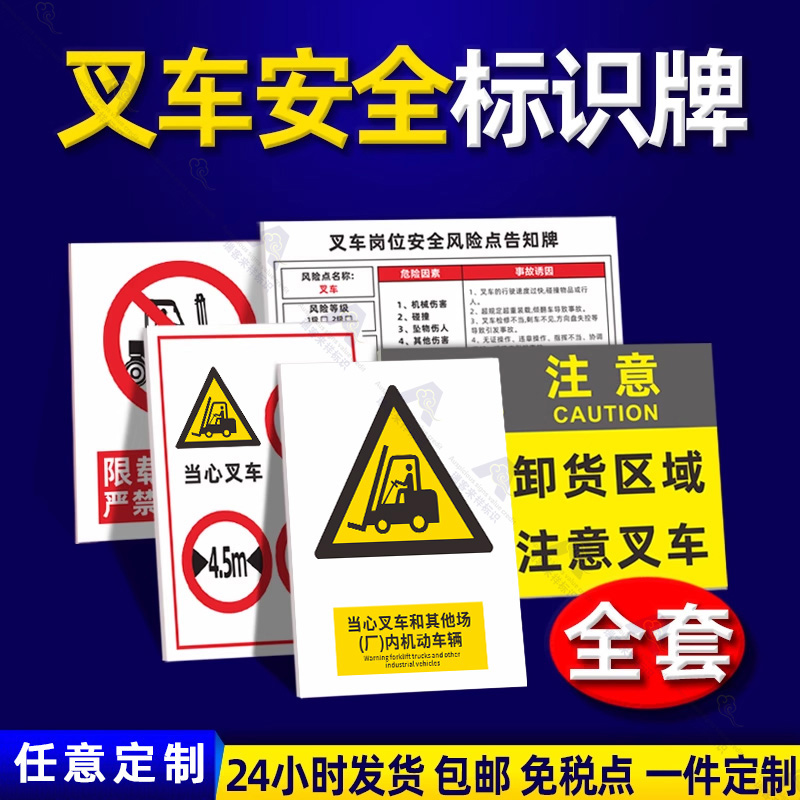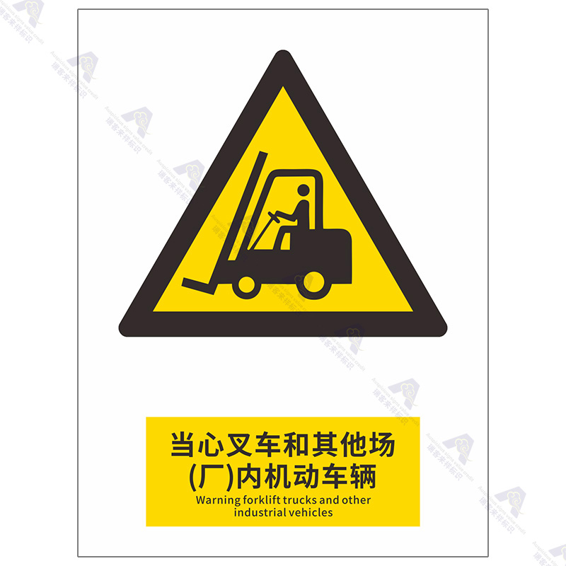 当心叉车和其他场厂内机动车辆警示牌禁止叉车载人运行负载通行叉车通道避让标识牌叉车风险点告知牌定做定制