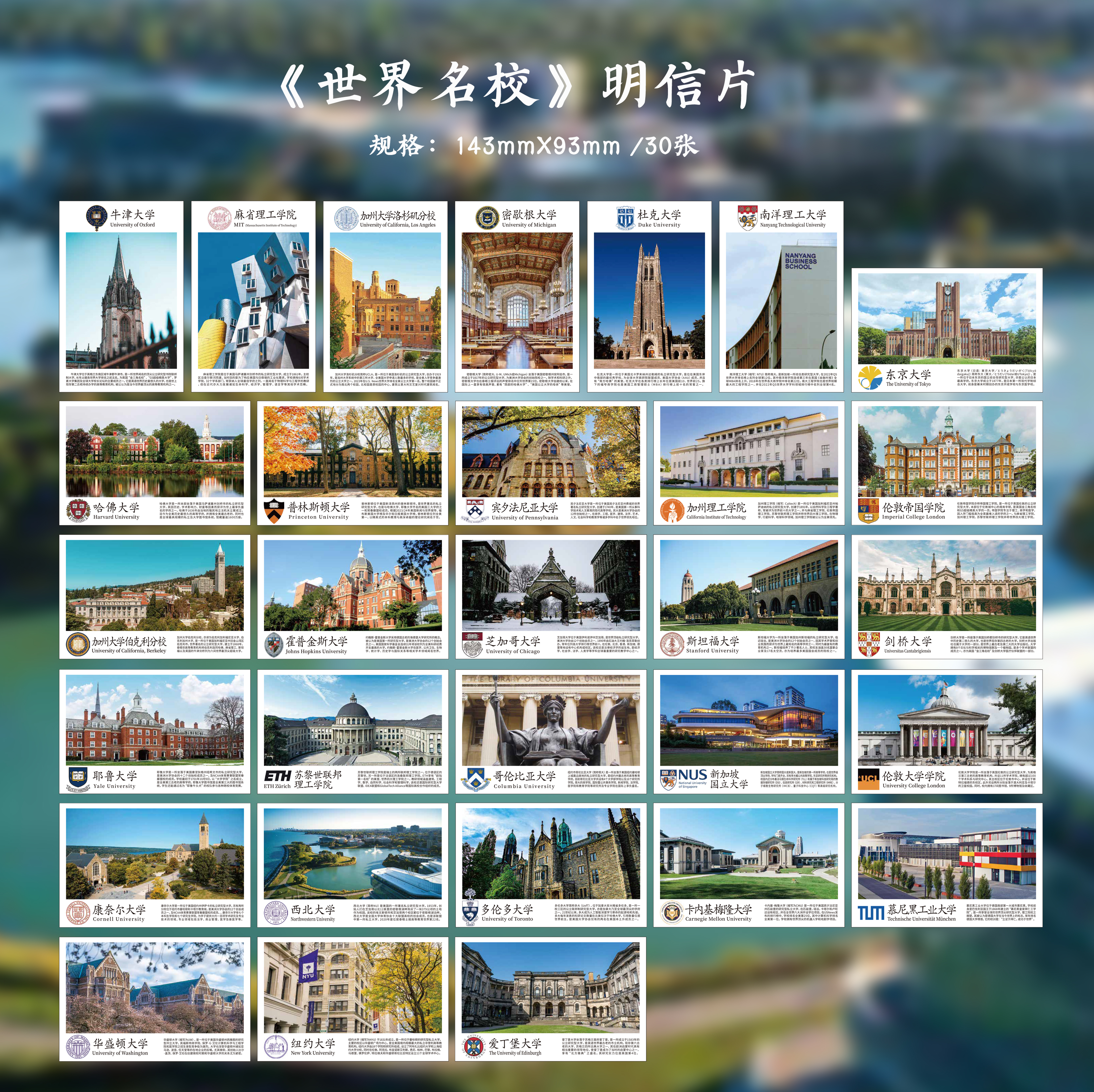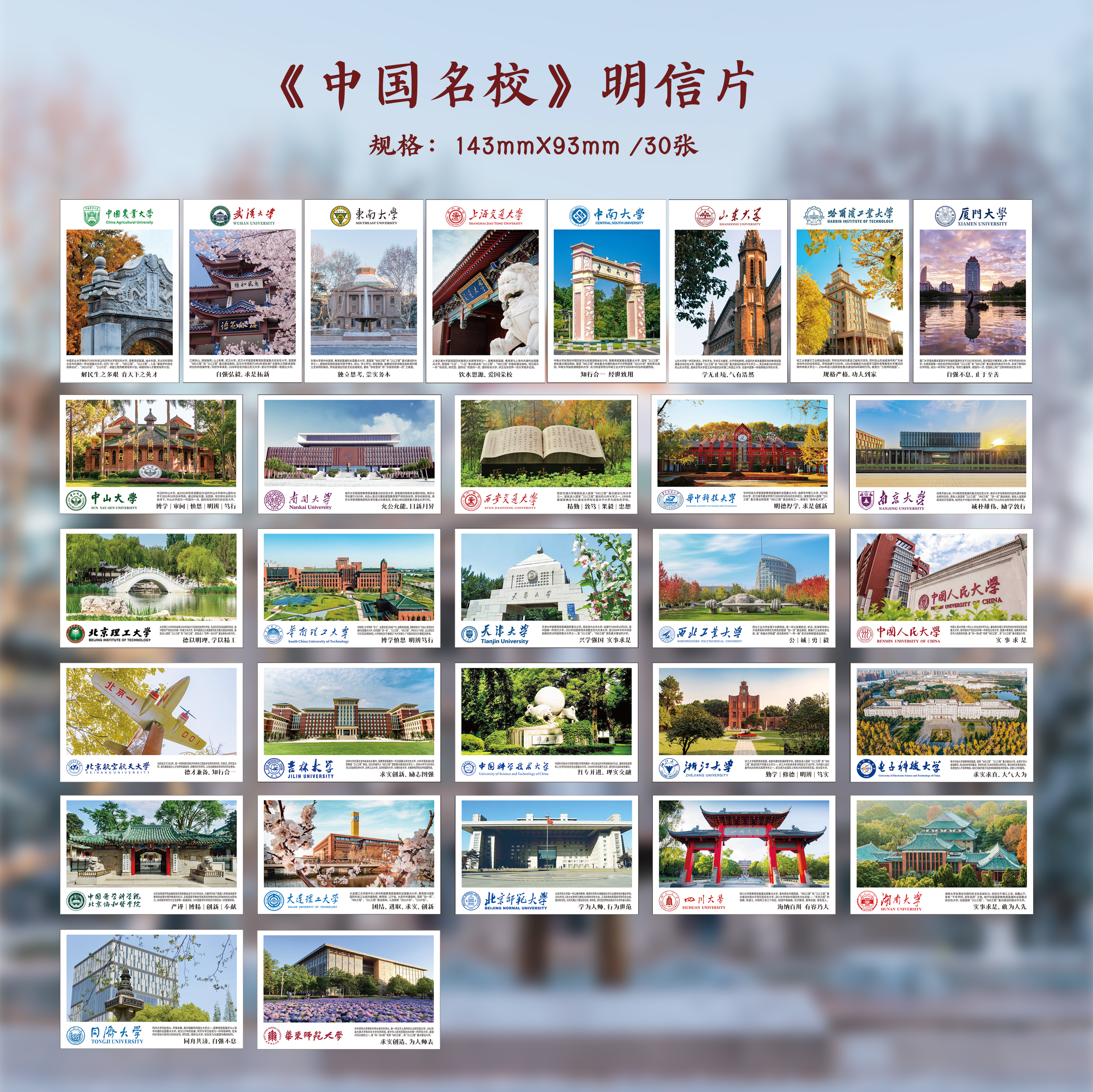 世界名校明信片常春藤中国名校清北985明信片30张盒装创意平面卡片学生中高考开学季励志卡目标大学收藏书签