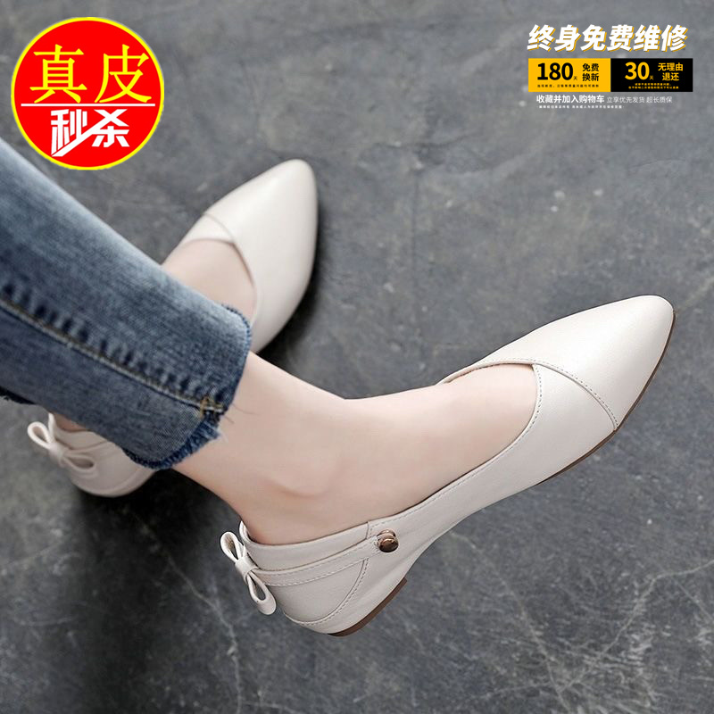 米霏!真皮~尖头铆钉平底单鞋女夏季浅口内增高软底瓢鞋大码女鞋