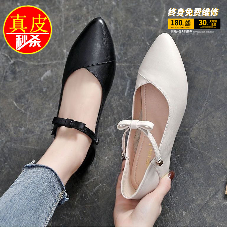[不二鞋坊]玛丽珍鞋2025年春季新款法式真皮蝴蝶结中粗高跟单鞋女