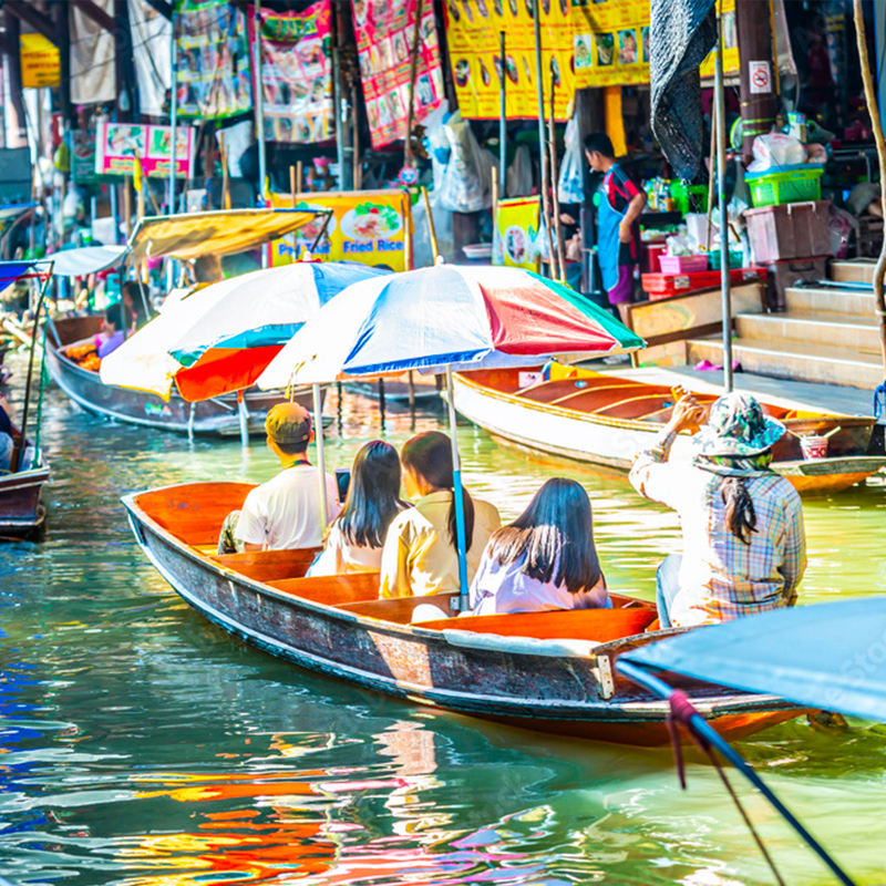 正规码头丨曼谷丹嫩沙多水上市场电动手划船包船核载1-6人丹嫩