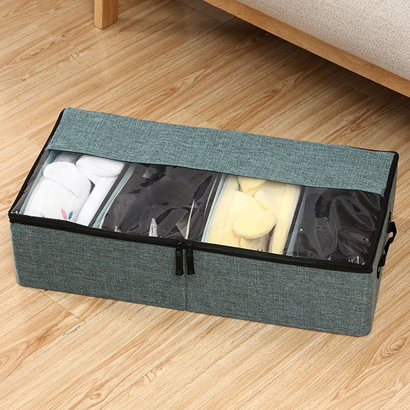 布艺四格鞋盒透明透视窗防尘整理衣物收纳箱床底折叠分格收纳鞋子