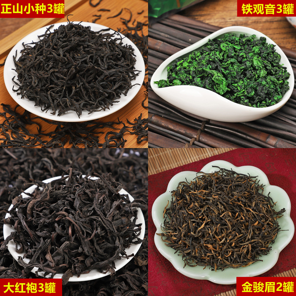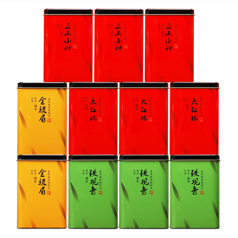 四大茗茶组合11罐装大红袍金骏眉正山小种红茶铁观音茶叶共1100g