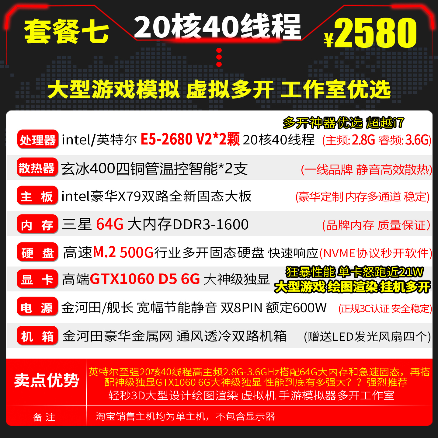 高端E5-2680v2十核多开工作室电脑主机组装机GTX1060吃鸡主机秒i7
