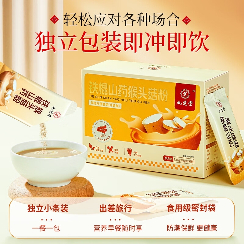 九芝堂铁棍山药猴头菇粉养胃护胃营养早餐即食冲泡养生代餐粉正品
