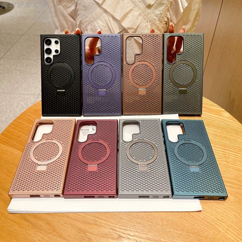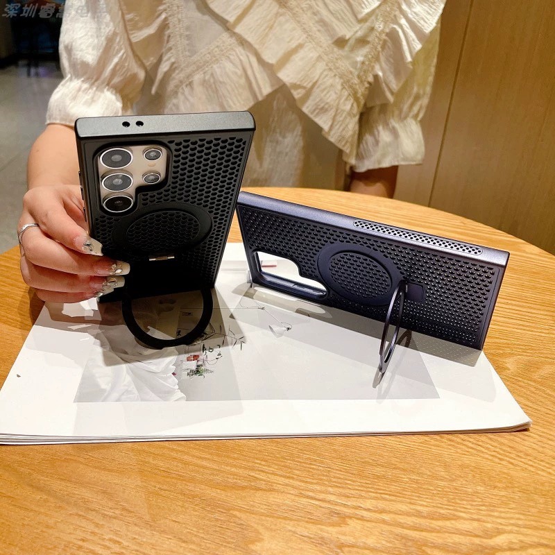 夏季散热新款适用三星s24ultra手机壳s23ultar磁吸支架S22u透气网孔galaxy是22plus全包23+fe防摔24加原厂套