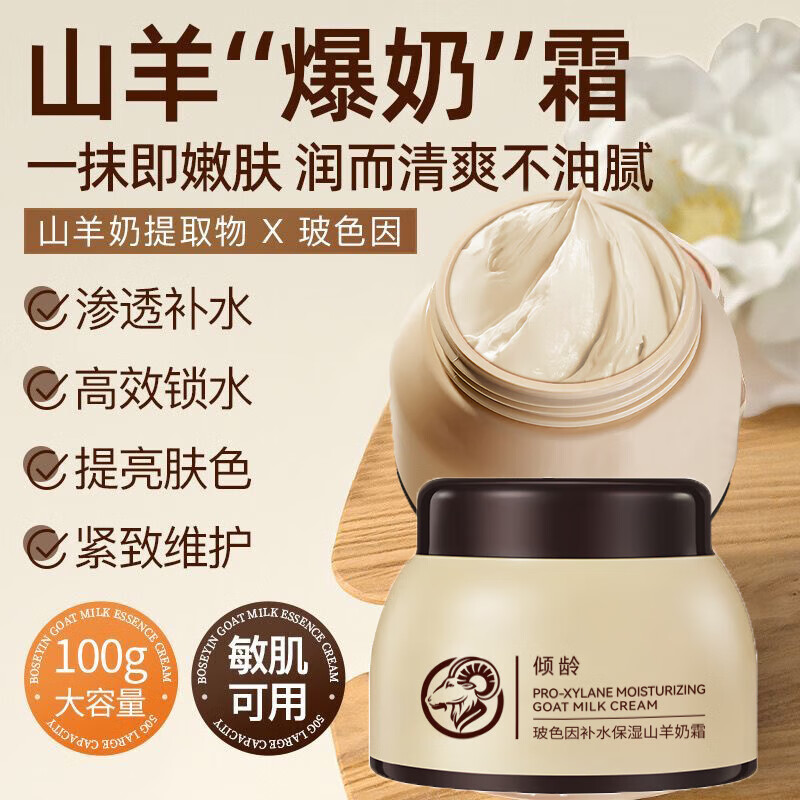 玻色因山羊奶霜补水保湿秋冬滋润不干燥嫩肤霜提亮肤色清爽不油腻