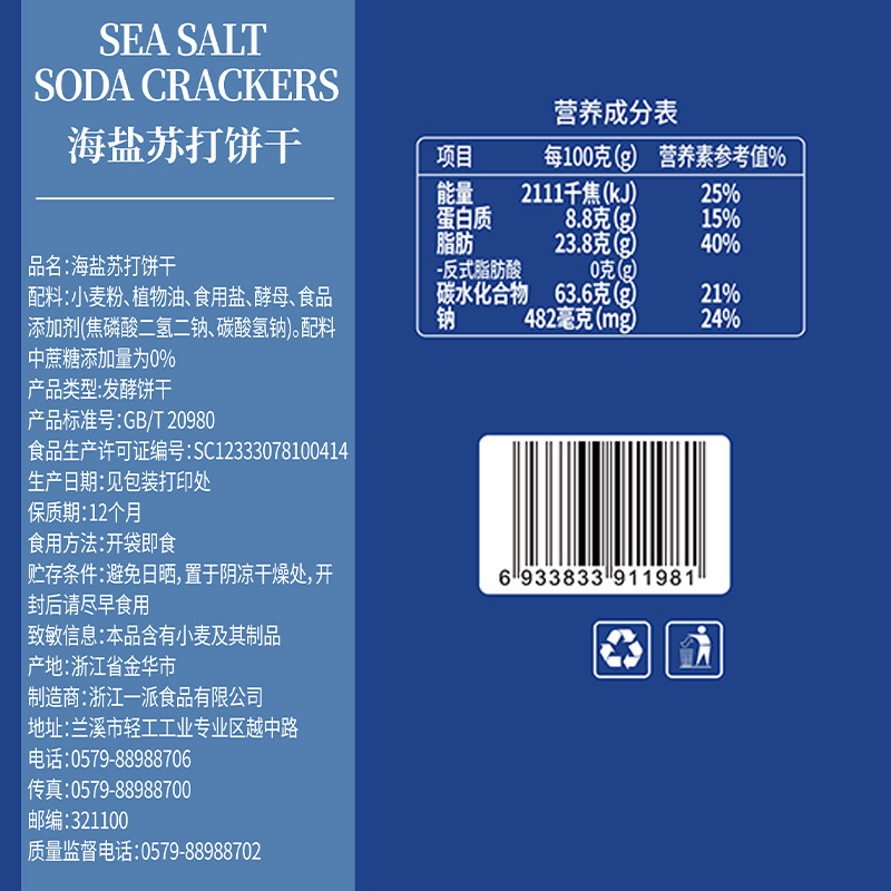 【拍1发2】精益珍苏打饼干矿盐咸味薄脆饼干办公室休闲零食小吃