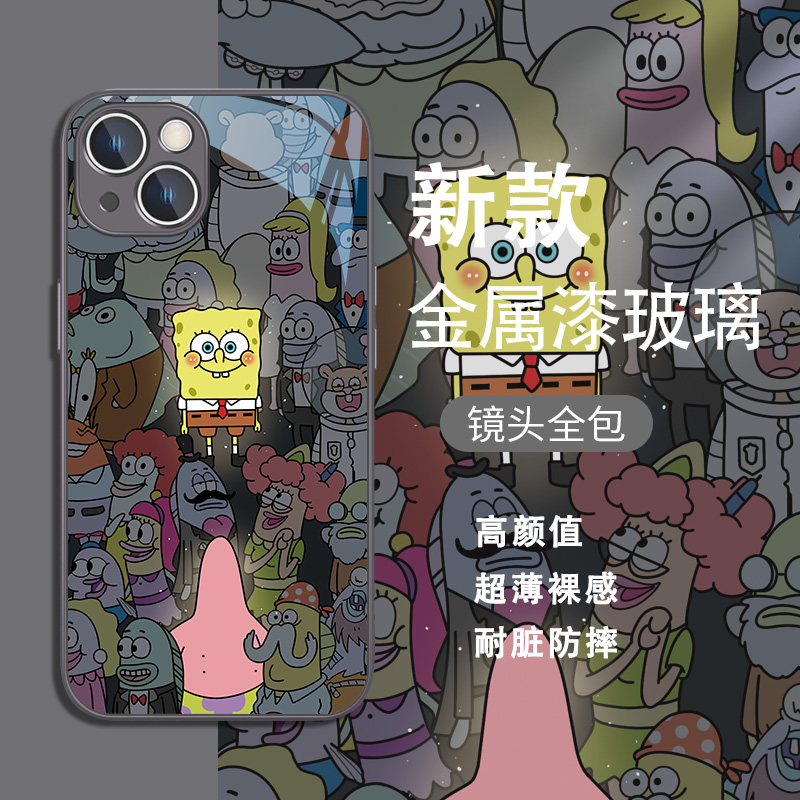人群中遇见你适用华为p40pro手机壳情侣p50海绵宝宝p30mate60pro派大星nova9女款pura70荣耀300/200玻璃7/8se