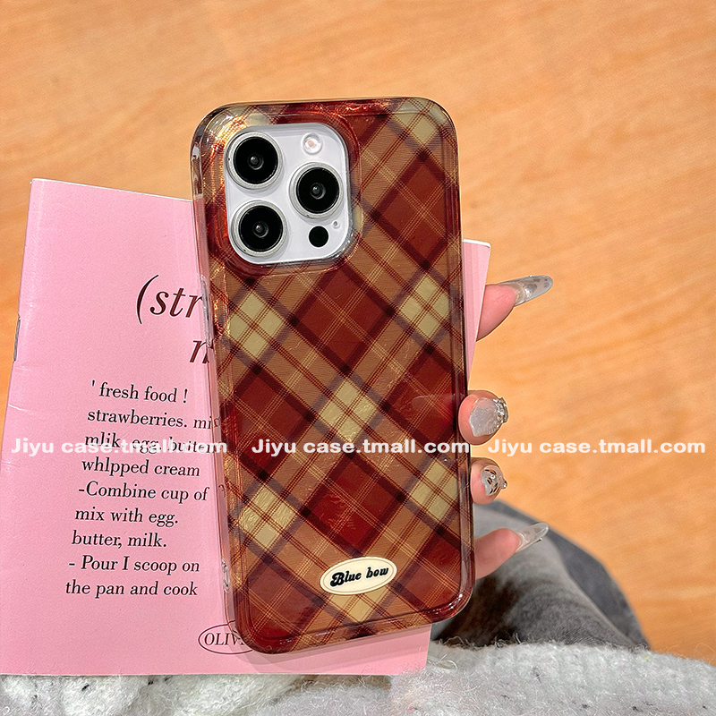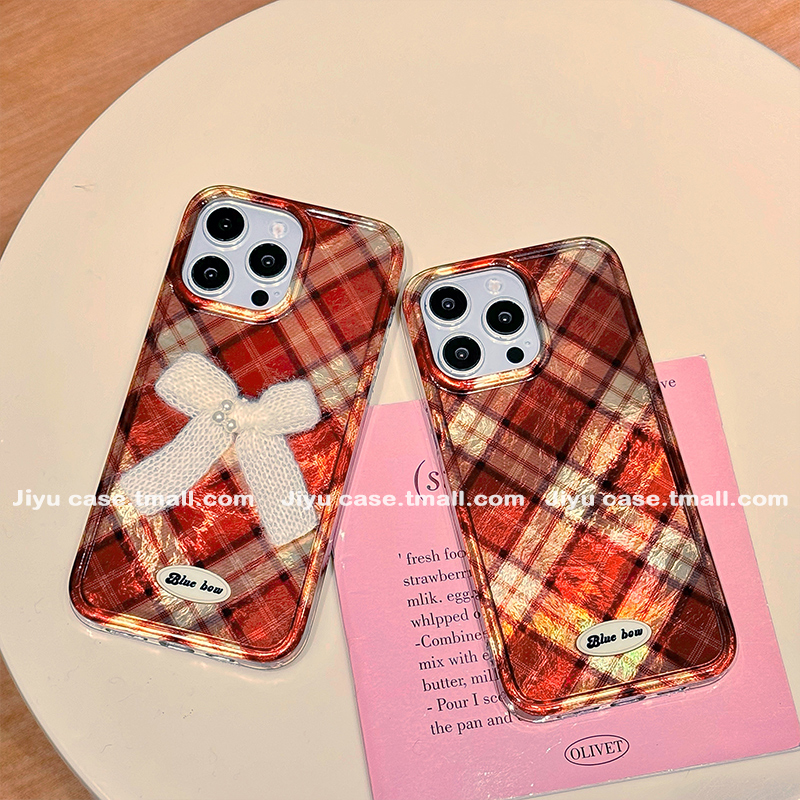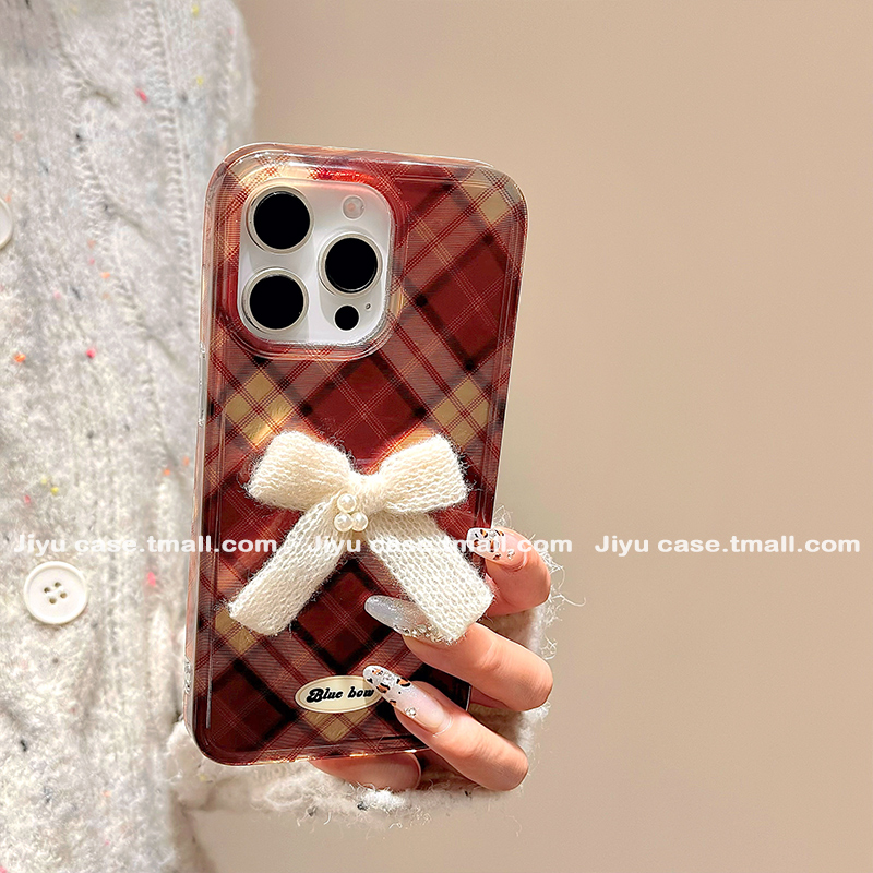秋冬复古菱格纹蝴蝶结适用苹果16promax手机壳iPhone16新款15高级14pro简约13韩风16pro女15pro小众16pro全包