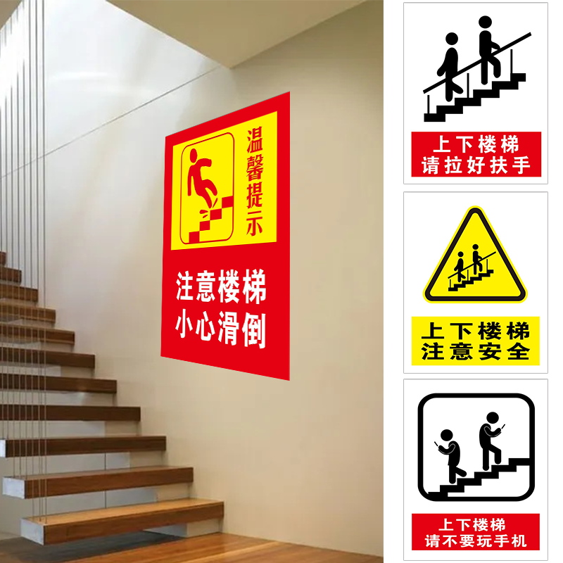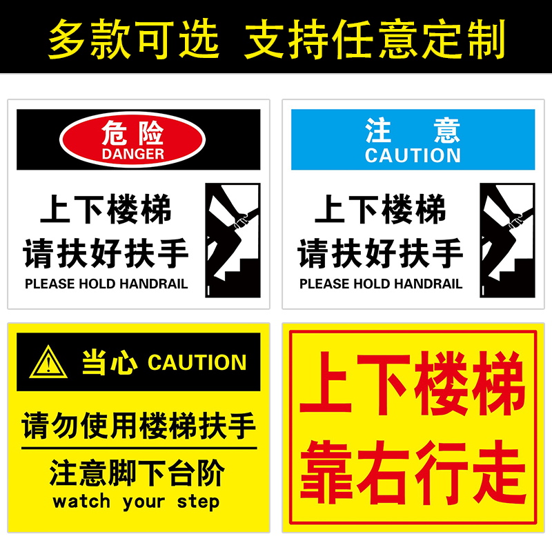 上下楼梯抓好扶手提示牌自动扶梯安全标识注意脚下防止摔倒安全标志牌当心跌倒碰头滑倒温馨提示标语警示牌