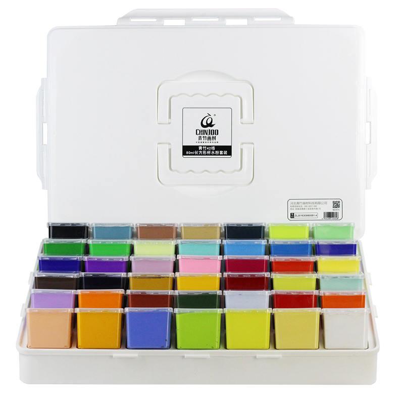 青竹水粉颜料套装42色美术学生用艺考35色绘画初学者色彩果冻颜料