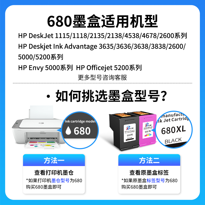 680墨盒兼容惠普3636打印机墨盒 HP 2676 2677 3638 2679 5088 3838 5078 2138 4538 3776打印机可加墨黑色