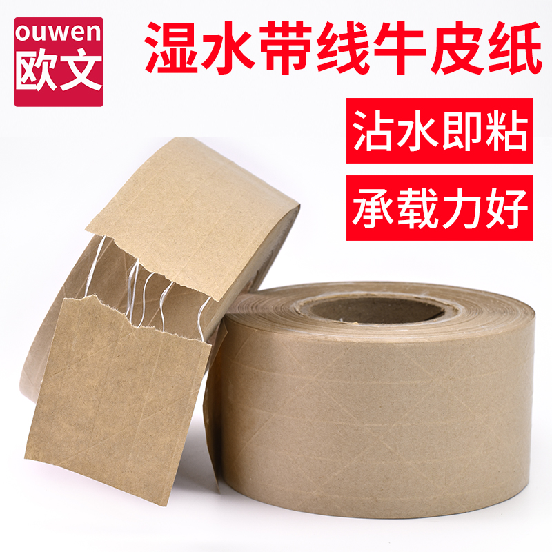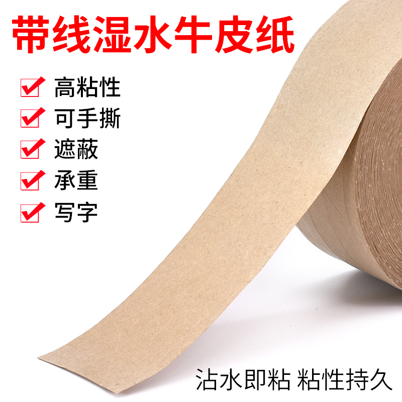 湿水牛皮纸胶带纤维线夹筋不易断裂防拆封箱胶布进出口常用胶纸箱印字遇水即粘遮盖裱画水彩水溶胶牛皮纸胶纸