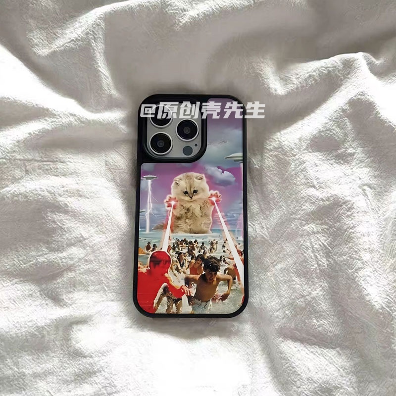 猫咪毁灭入侵原创亚克力黑边磁吸适用苹果iPhone16promax手机壳1312pro小米1415Pro华为mate60p70三星S23防摔