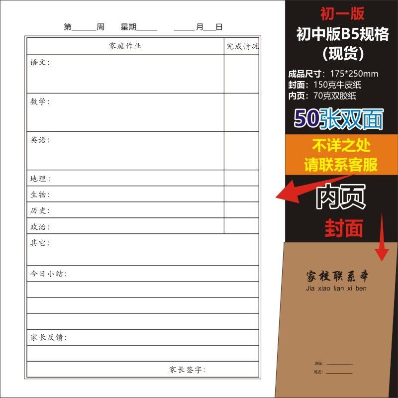 B5双减初中家校联系簿小学成长手册家庭作业纠错记录本联系册定制