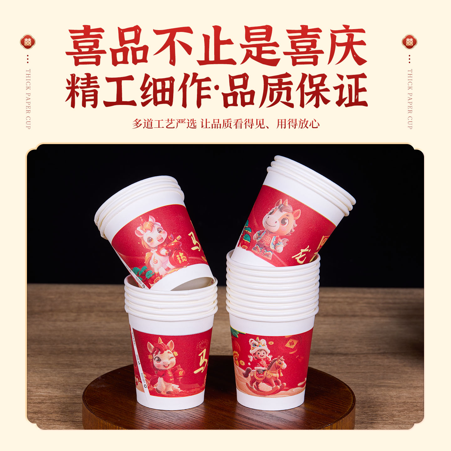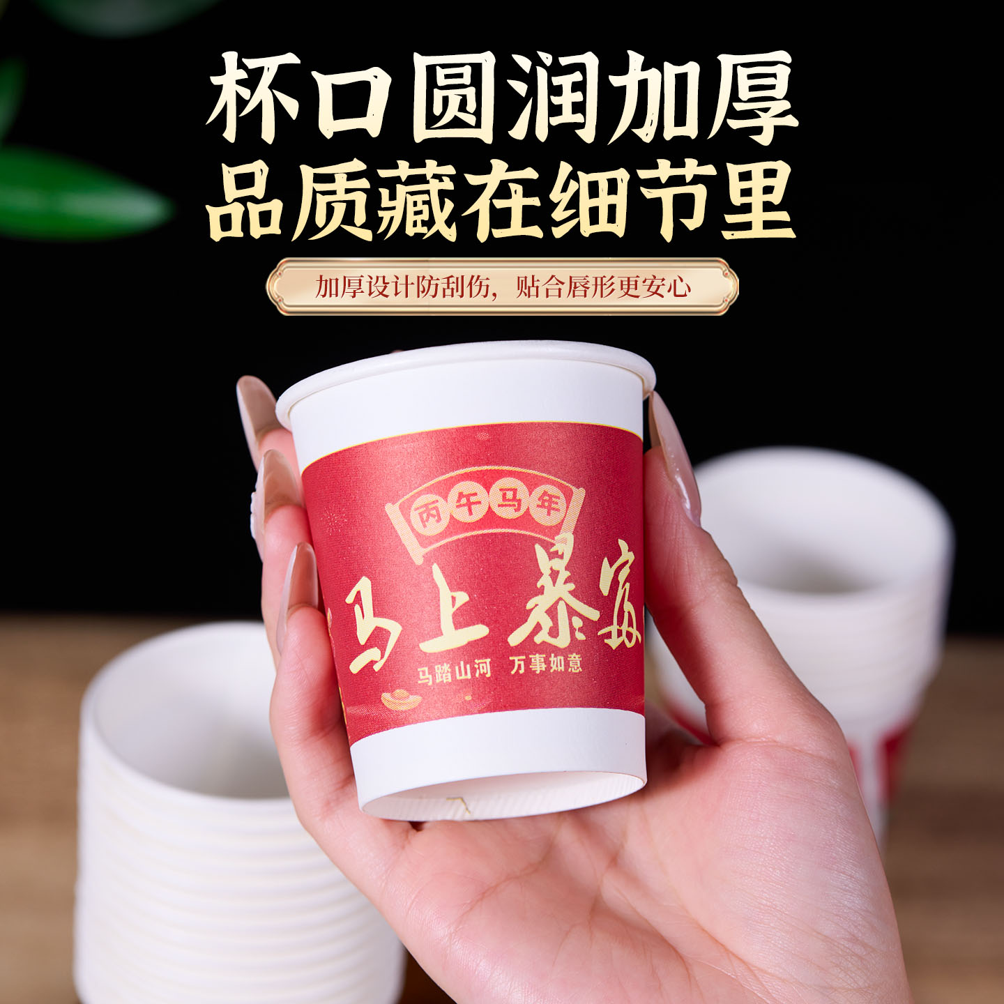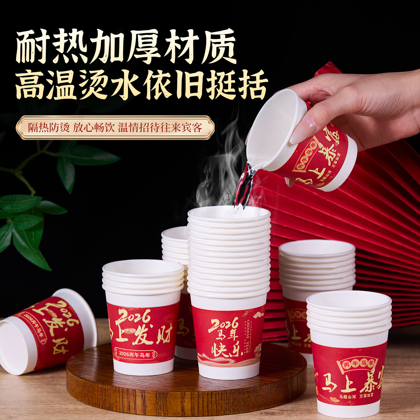 一次性杯子水杯纸杯家用一次性加厚过年纸杯2026新年马年春节喜庆
