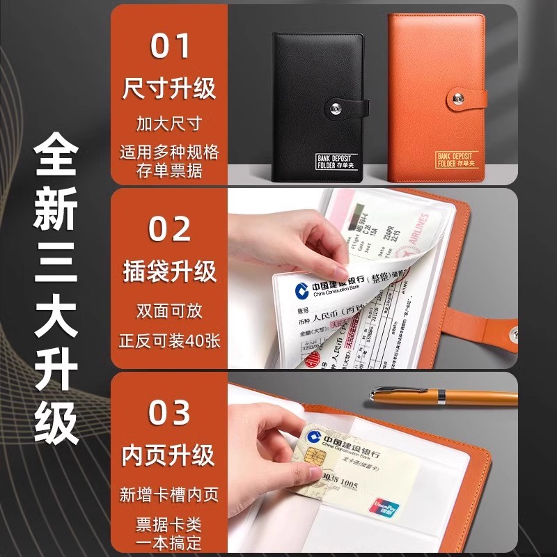 2025年存折存单收纳本证件收纳包多功能票据纸质定期存单夹卡本一体a5防水皮大容量钱款活页票据收藏夹资料册