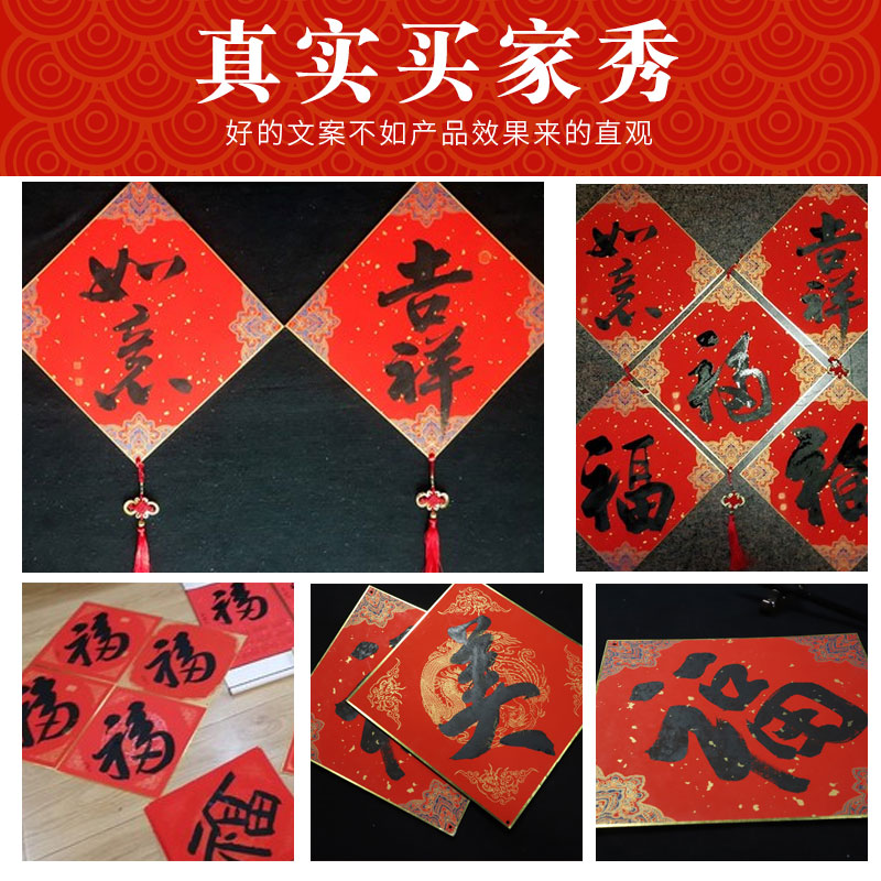 2026年福卡挂件 写福字的卡纸烫金蜡染宣纸斗方硬卡挂穗纸空白手写春联万年红对联硬卡斗方宫廷彩绘加厚