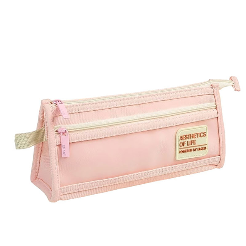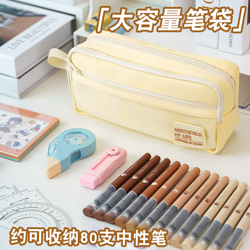 高颜值ins风笔袋大容量小众不撞款女孩文具袋初中女生女童简约铅笔盒儿童学生帆布双层2025新款翻盖三角黄色