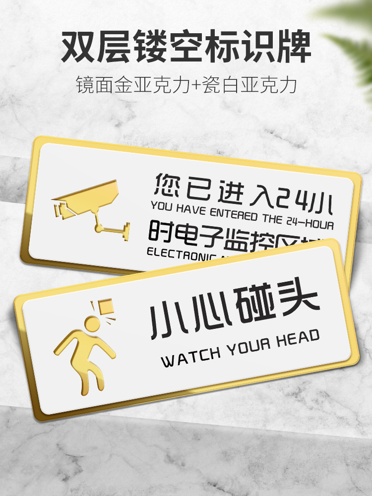 内有监控警示牌您已进入24小时电子监控区域亚克力镜面墙贴安全标识牌标志牌双层节约用水节温馨提示牌贴