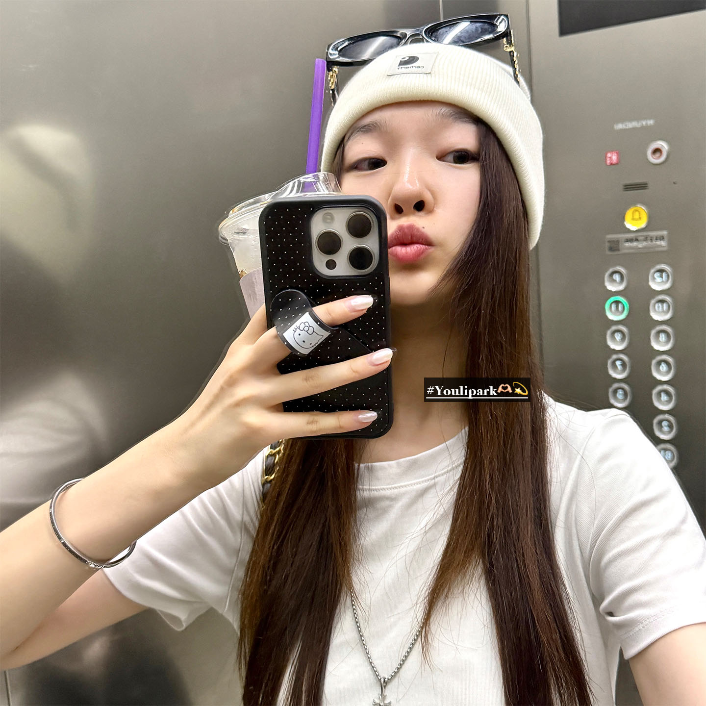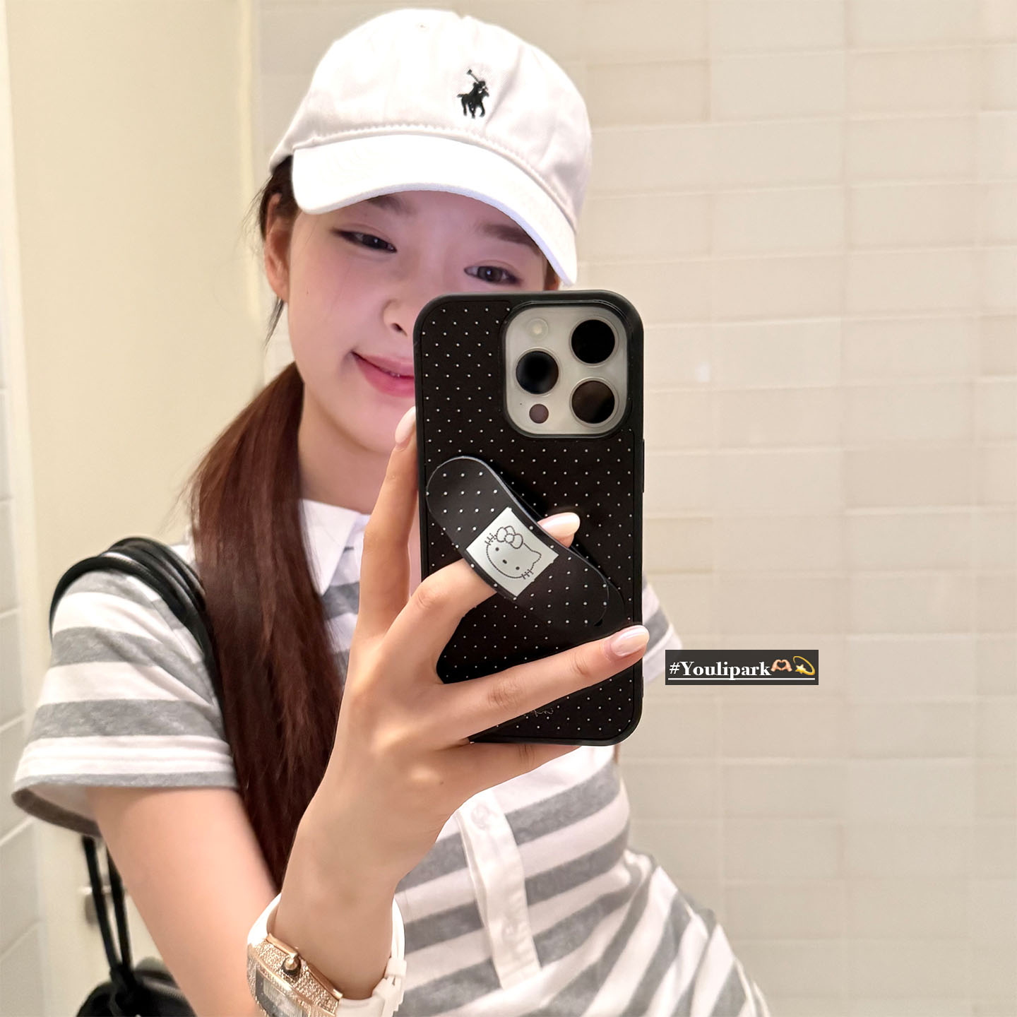 由里公园ins韩系波点可爱猫咪创可贴支架15适用17pro苹果17ProMax手机壳iPhone16全包17新款14Promax保护套女