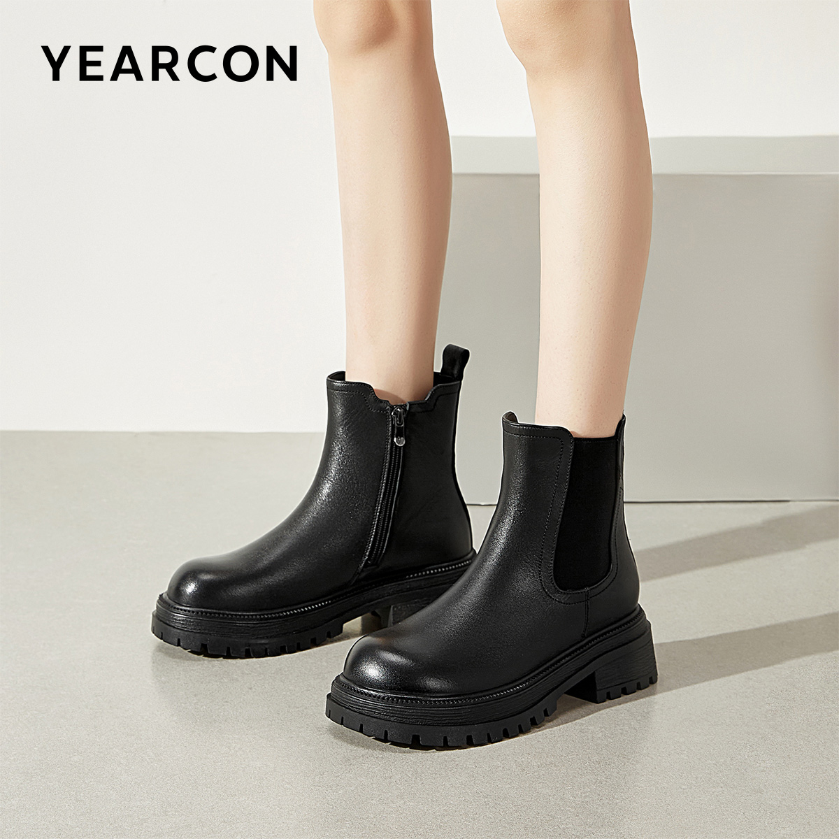 意尔康女鞋冬季休闲加绒短靴切尔西靴粗跟气质英伦显瘦复古及踝靴
