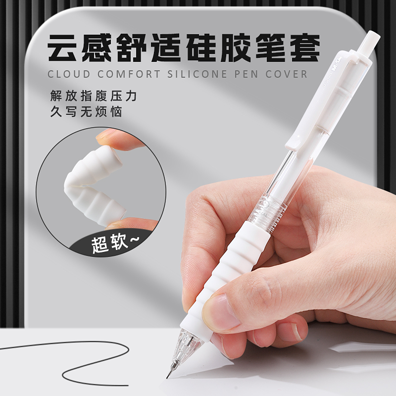晨光云握手自动铅笔套装小学生专用高颜值低重心书写不易断铅的0.5mm白优品自动笔HB铅芯铅笔橡皮礼盒考试学