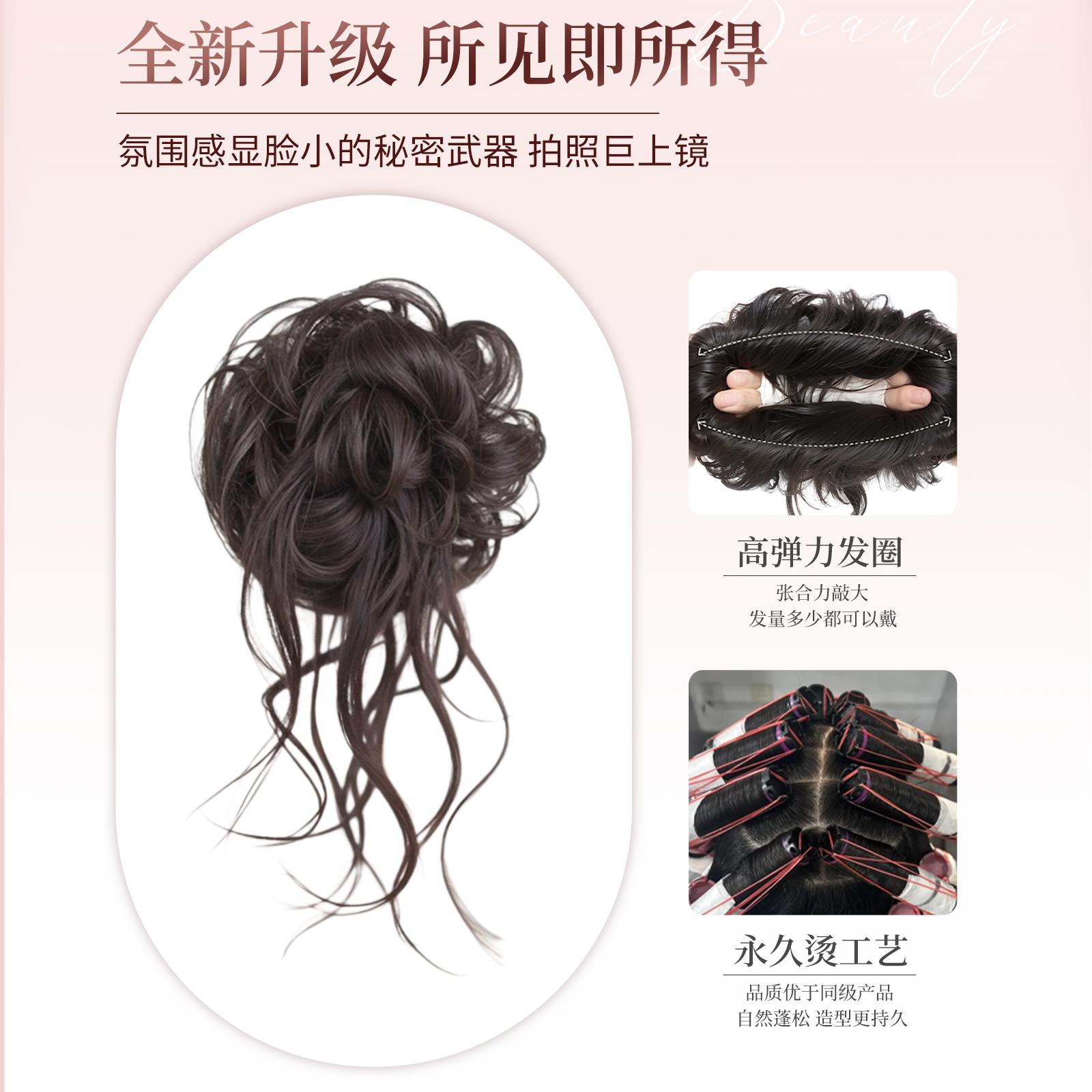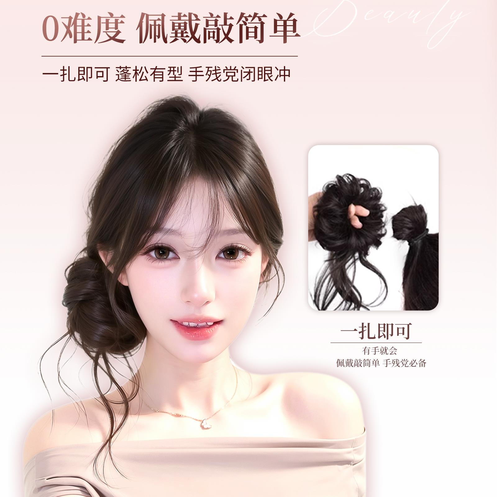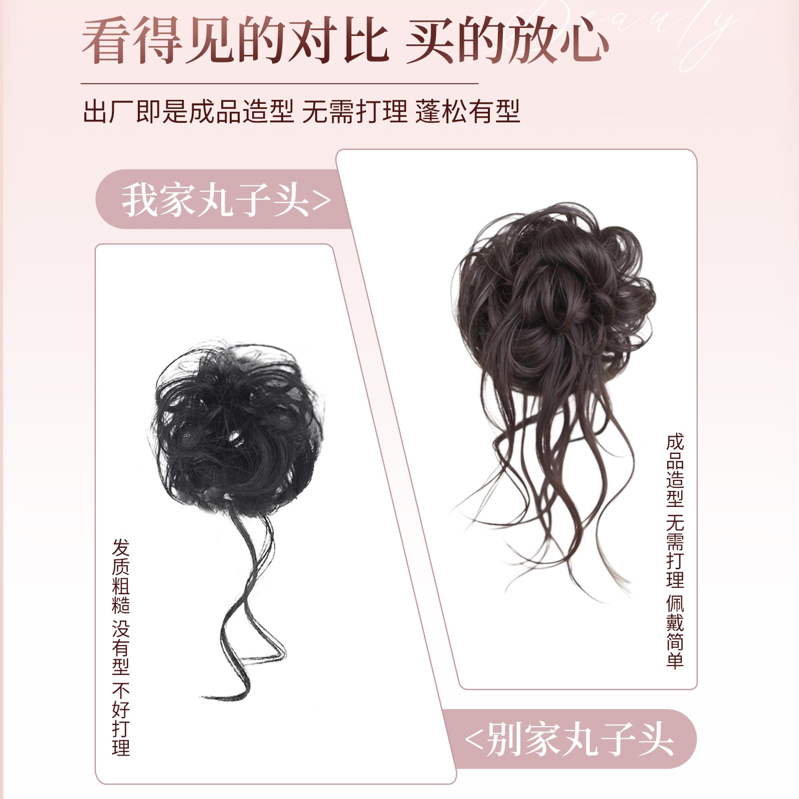 丸子头假发发圈自然仿真侧扎千金盘发包蓬松高颅顶假发花苞头神器