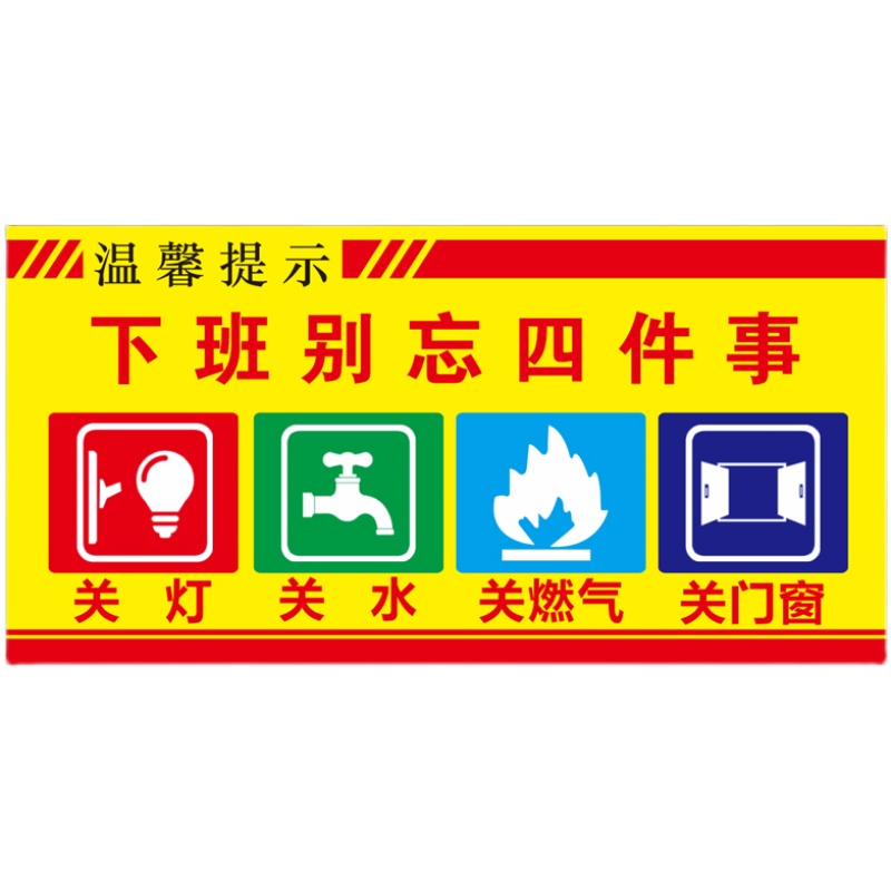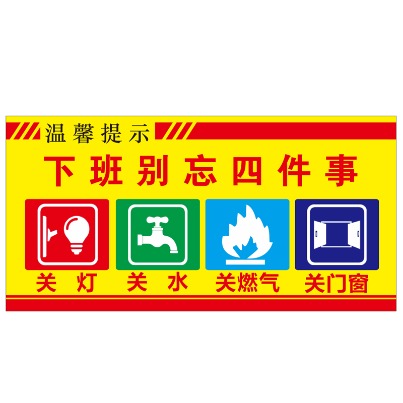 下班不忘四件事4d管理节约用水用电用纸酒店幼儿园食堂办公室标牌