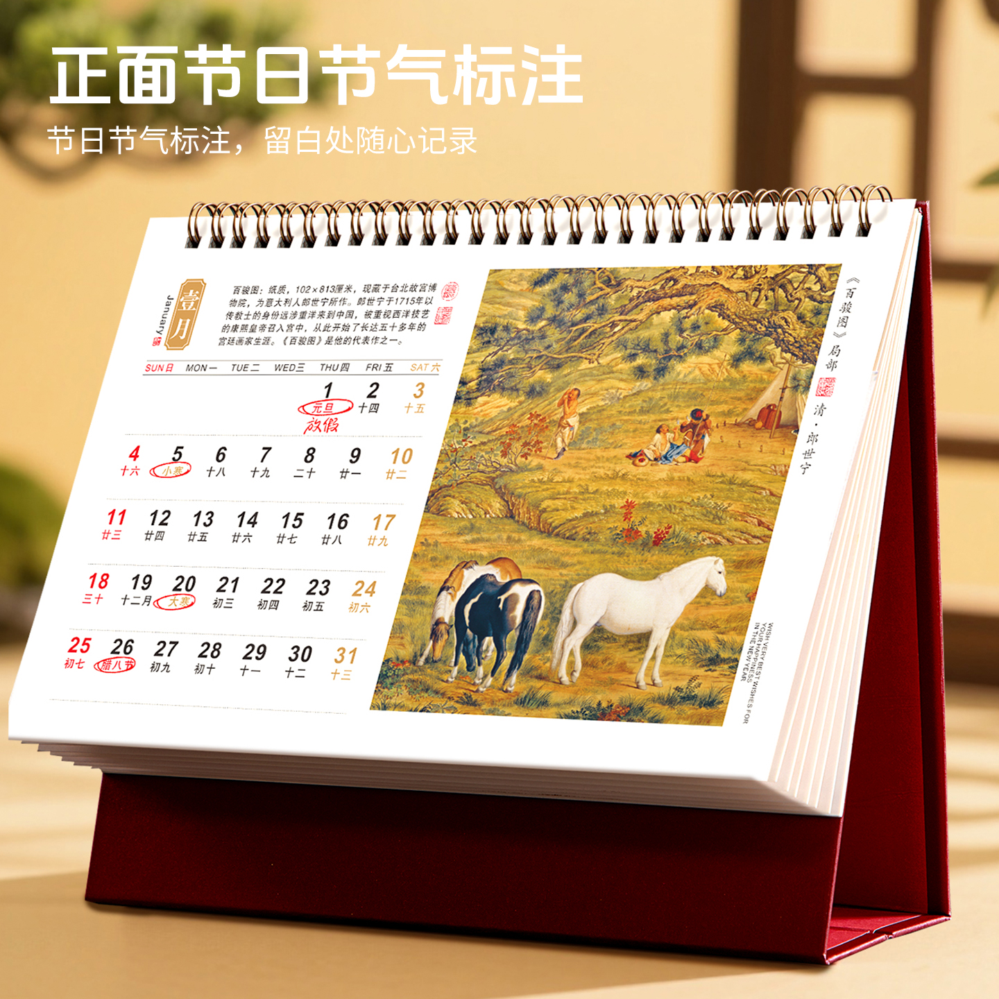 2026年台历全年新款定制广告位可印logo商务桌面摆件办公计划记事日历本翻页月历高颜值简约马年自律打卡台历