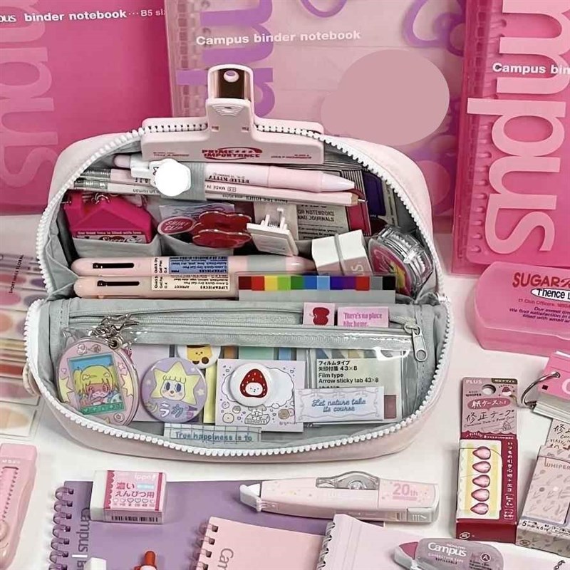 日系折叠笔袋可放吧唧高颜值风简约初高中女学生大容量文具袋