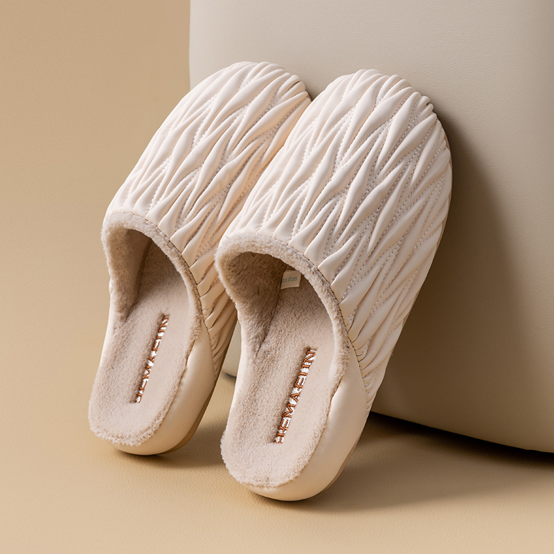 褶皱棉拖鞋女士冬季2025新款防水室内居家保暖加绒厚底防滑棉鞋男