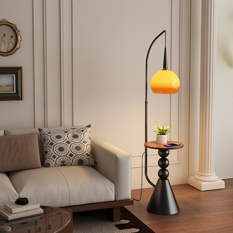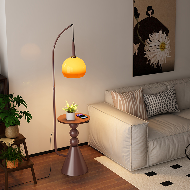 2025中古客厅落地灯氛围沙发旁边高级感床头置物架一体卧室台灯
