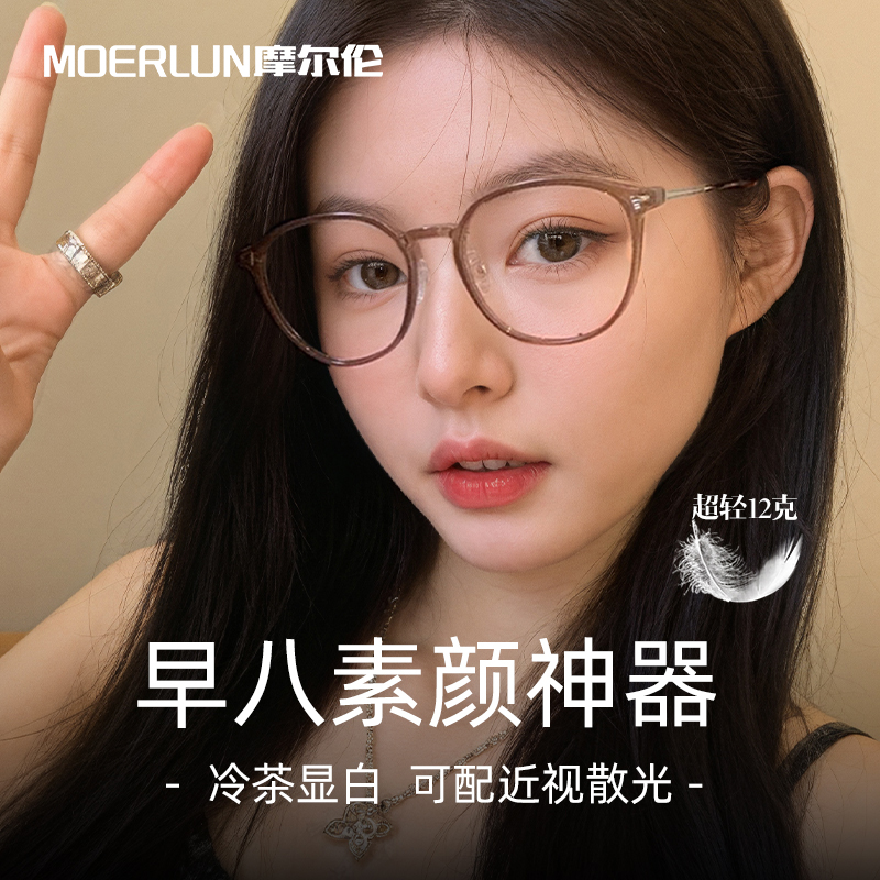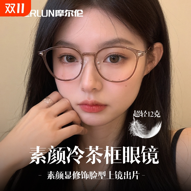 目戏专业配冷茶色眼镜近视女款可配度数轻眼镜框镜架