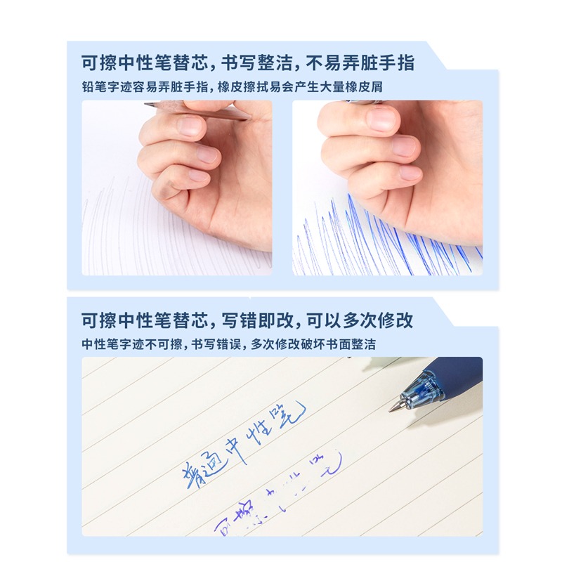 晨光正品热可擦中性笔按动替芯晶蓝黑色笔芯0.5mmST笔头大容量魔力易摩磨擦签字笔小学生专用学习用品文具