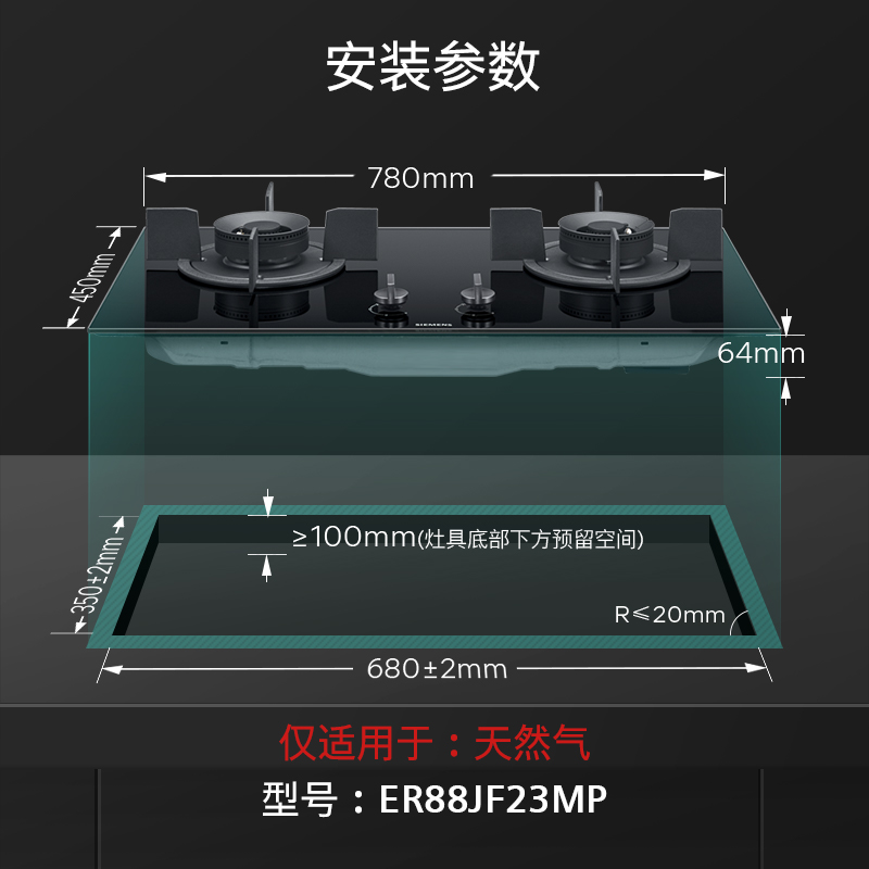 西门子嵌入式燃气灶具5.0大火力厨房双灶易清洁天然气ER88JF23MP