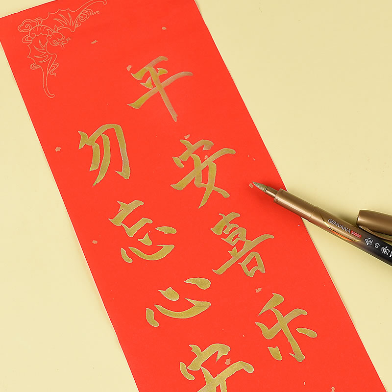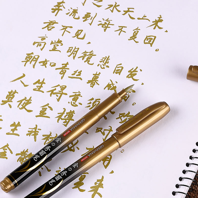 金万年抄经笔金色描经笔秀丽笔大楷金笔软头金色毛笔签到笔金色墨水烫金书法笔喜帖聘书笔加粗金笔写金字的笔