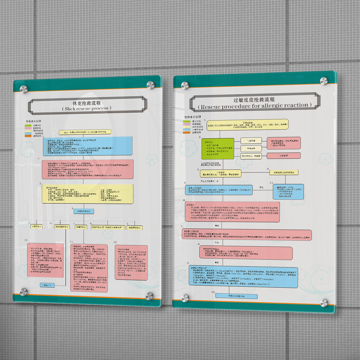 医院抢救室急救流程步骤挂画过敏性窒息休克反应图心肺复苏中毒抢救流程图示意图管理制度抢救流程图诊所定制